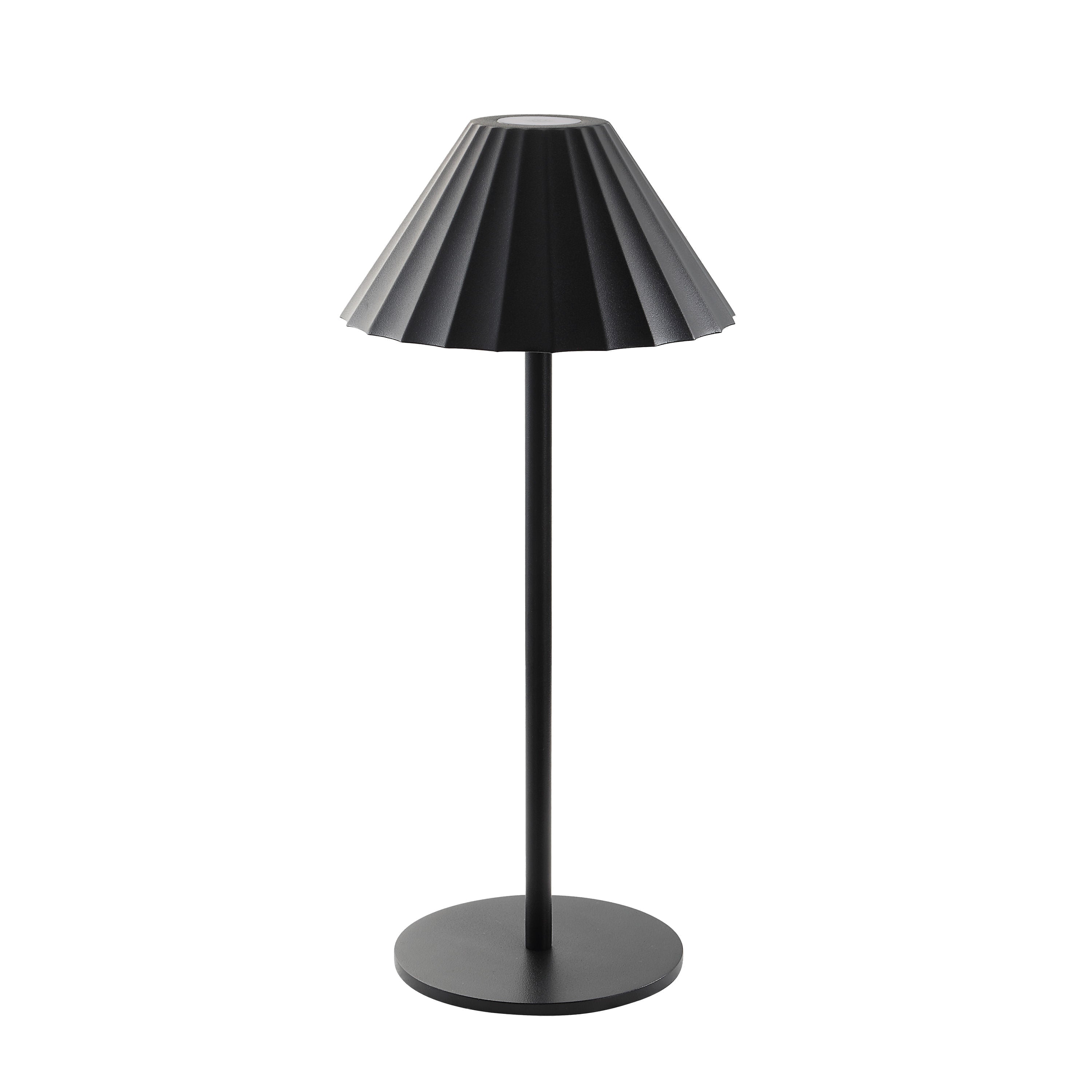 Illuminez n'importe quel espace, même sans prise électrique, grâce à cette lampe de table LED à intensité variable et fonctionnant sur piles. Avec ses lignes épurées, son abat-jour plissé en acrylique et sa finition noire mate tendance, cette lampe s'allume et s'éteint d'une simple pression pour sublimer n'importe quel intérieur.