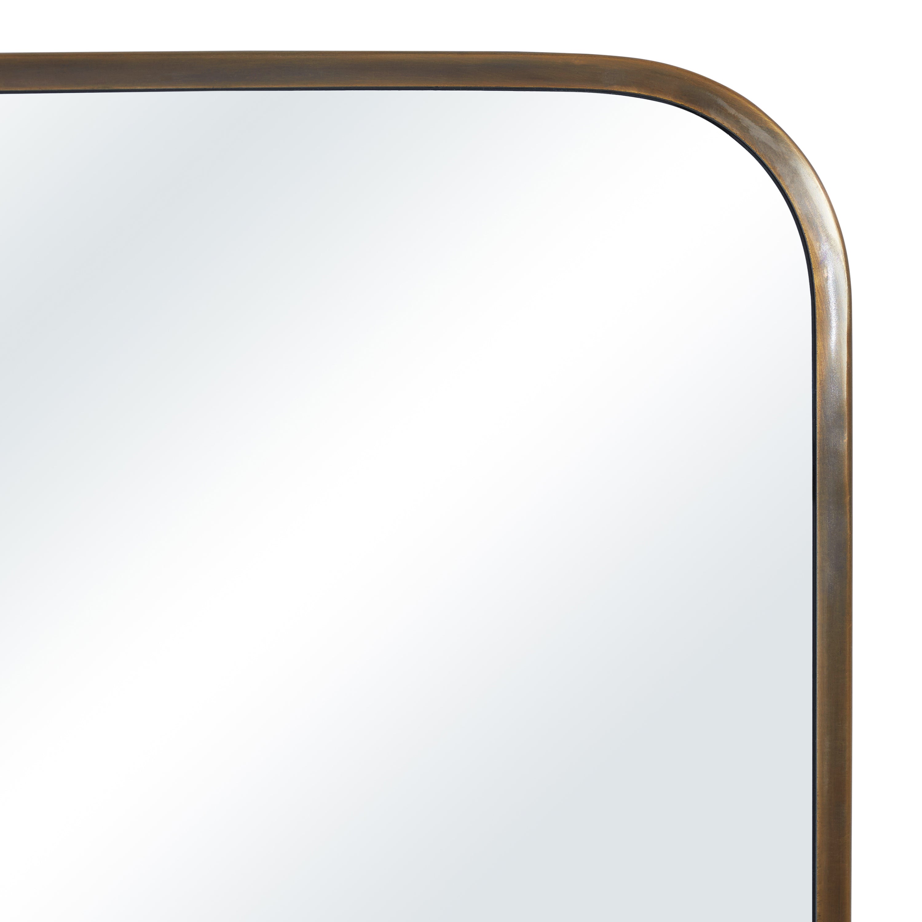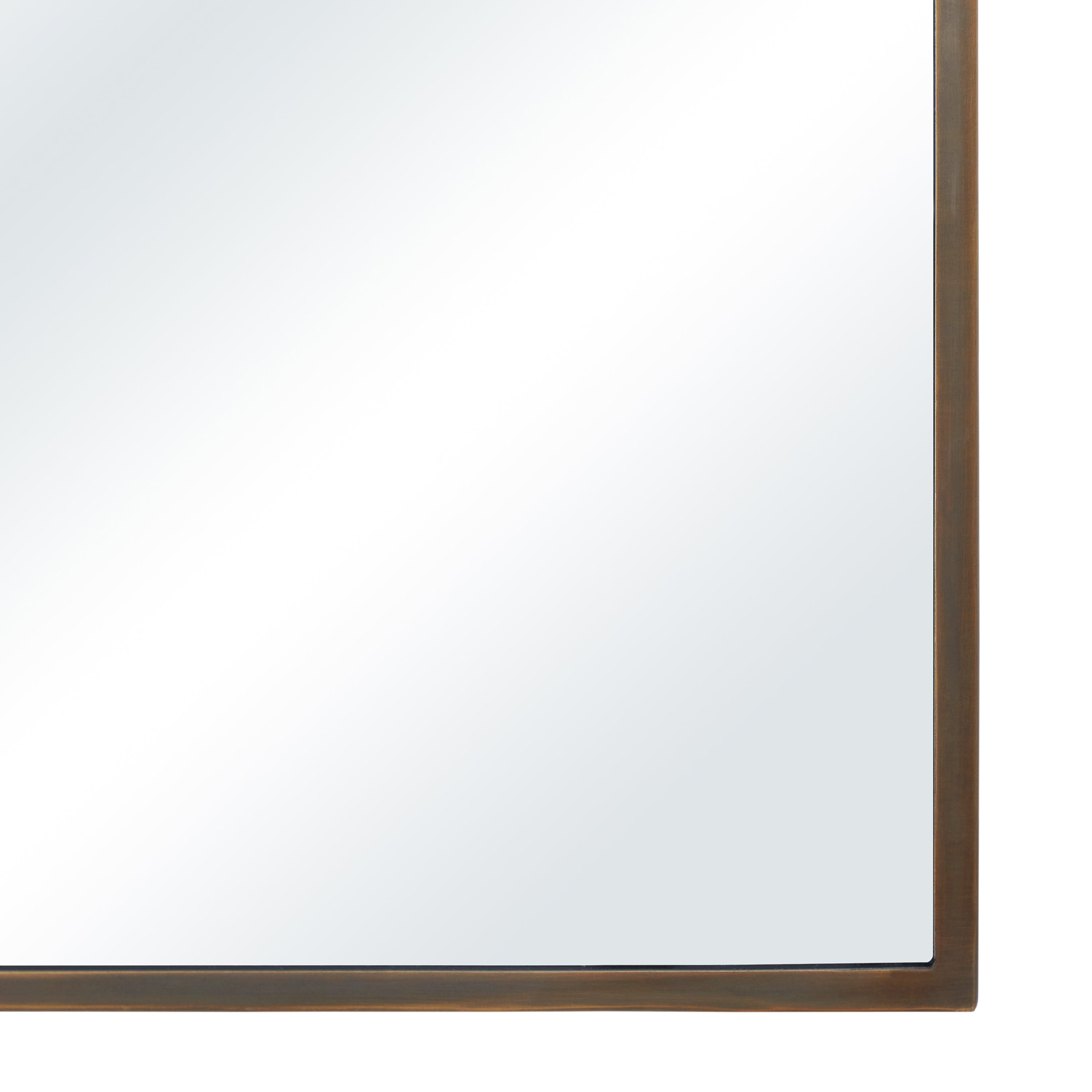 Ce miroir, à la fois moderne et intemporel, s'harmonise avec les éléments décoratifs environnants tout en affirmant son style propre. Ses dimensions de 61 x 91 cm (24 x 36 pouces) sont idéales pour être posé sur une coiffeuse ou une commode. Son cadre en fer doré thermolaqué s'intègre parfaitement dans un intérieur moderne du milieu du siècle, tout en pouvant adopter un style plus classique.