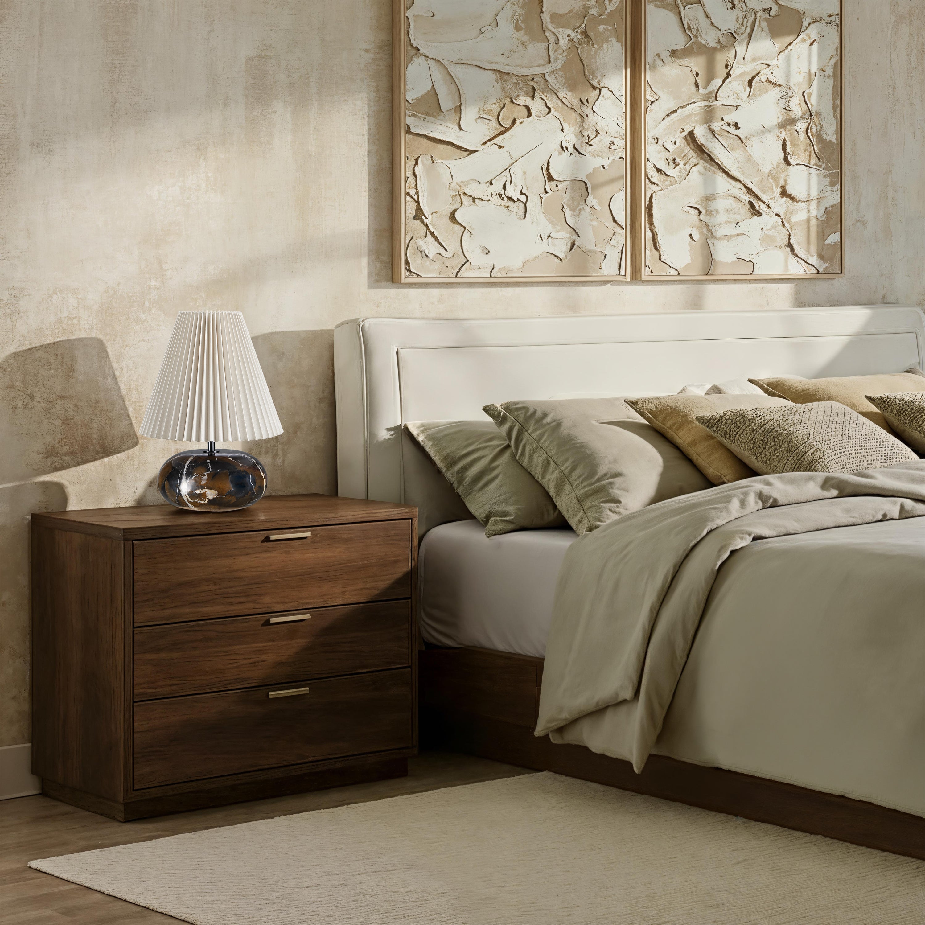 Avec son élégant corps en marbre noir et son abat-jour cylindrique plissé couleur ivoire, la lampe de table Philbert offre un effet saisissant malgré son format compact. Conçue pour la collection Arren Williams, elle mesure environ 25 cm de large sur 35 cm de haut, idéale pour une table d'appoint ou une table de chevet dans les intérieurs contemporains aux tons neutres.