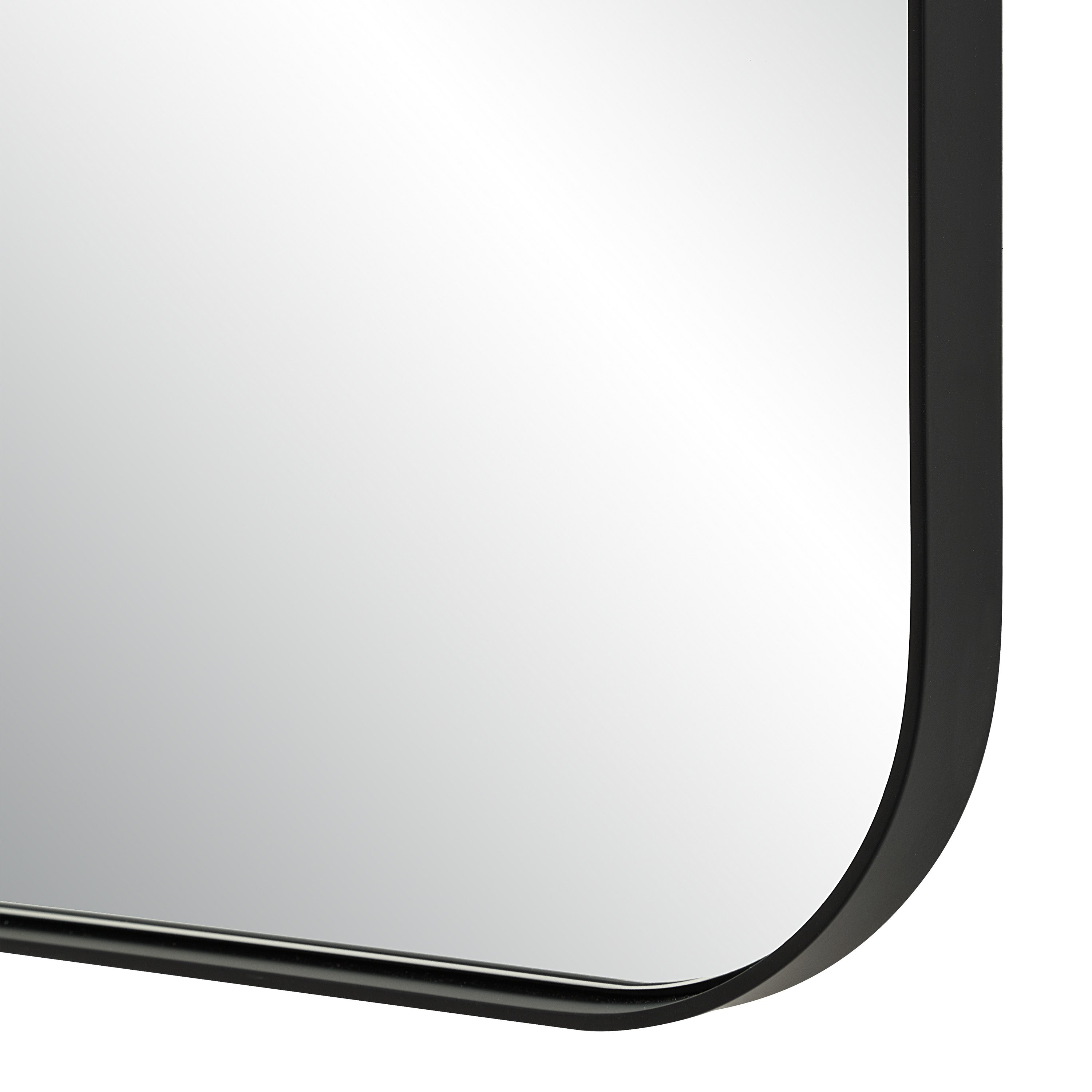 Refresh any interior with the contemporary Heron wall mirror, a modern take on a traditional rectangular form. Softly rounded corners bring a subtle, designer edge, while a minimalist decorative detail enhances its visual appeal. The matte black iron frame pairs with high-quality beveled glass for crystal clear clarity, proving that simple refinement can create a stylish, memorable statement in any space.