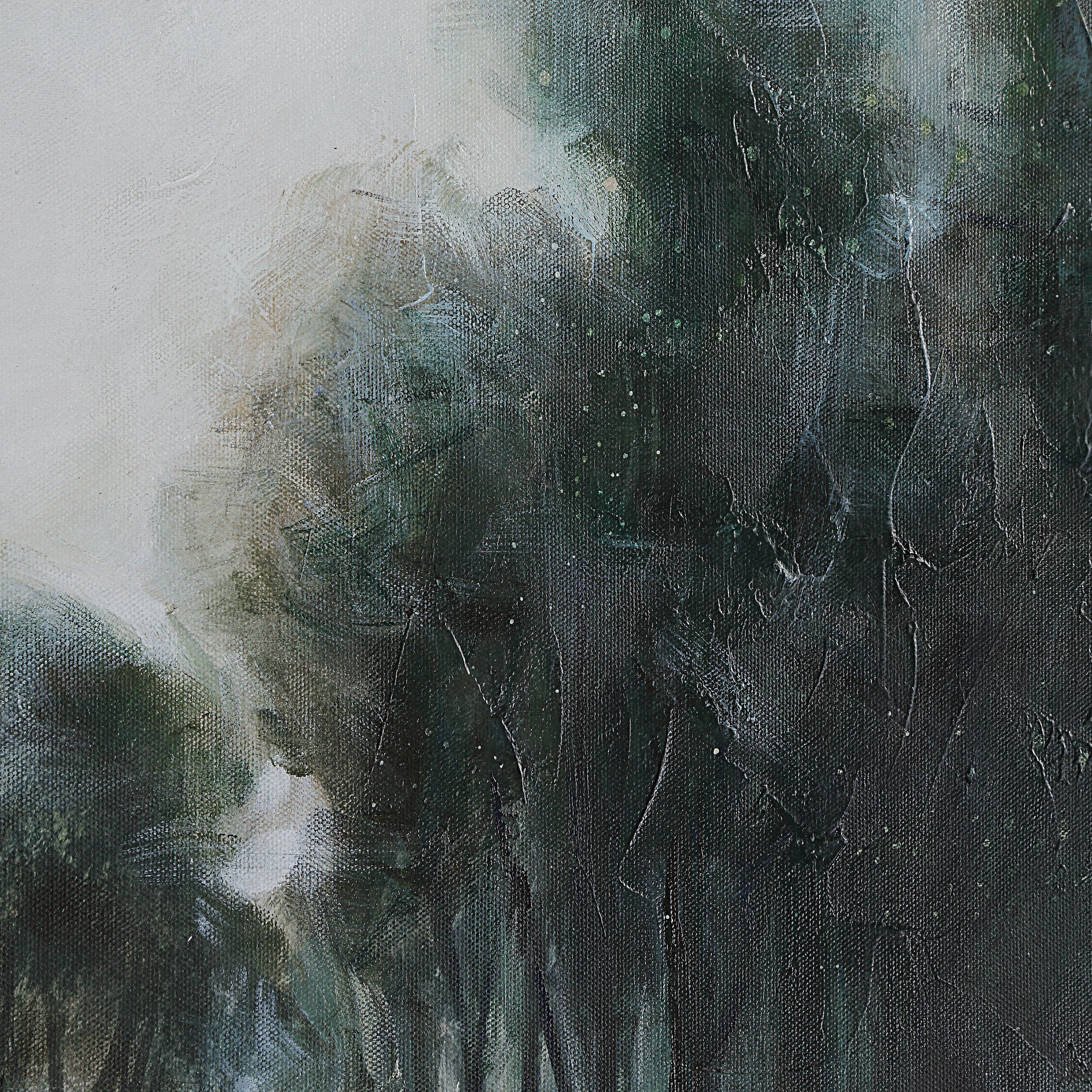 Bring texture and a dash of soothing color to any room with this sprawling landscape painting. A stylish choice for transitional spaces, this hand-painted canvas features loads of texture for eye-catching appeal. Measuring 60" x 30" and outfitted with a floating black oak frame, it's ready to hang anywhere a large-scale impact is needed.